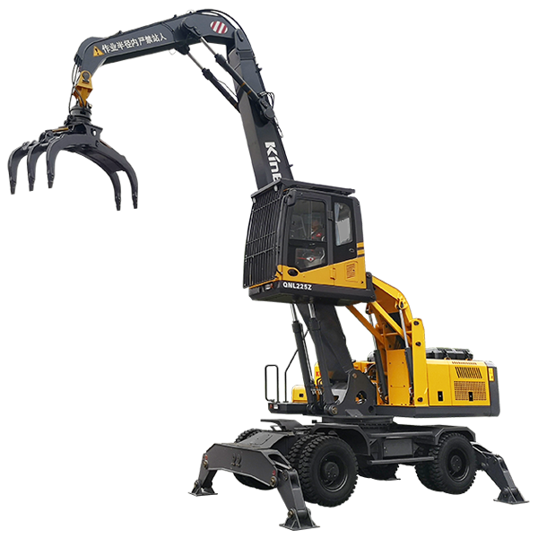 8、轮胎式抓料机,下车双支腿布置,转场方便快捷,作业稳定可靠。
