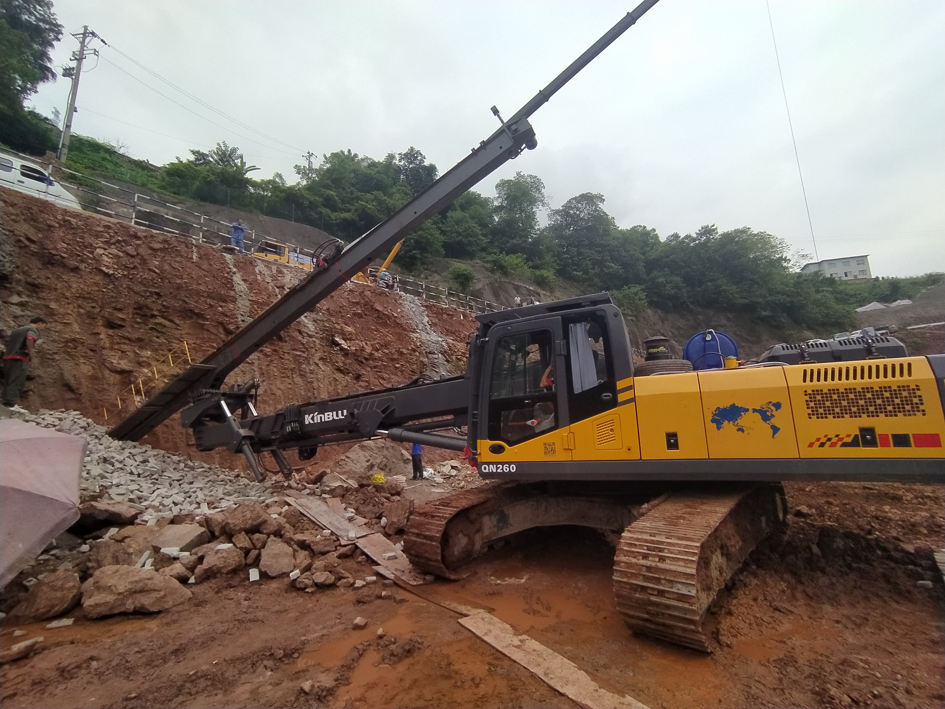 玖鼎QN330锚杆钻机自推出以来,广受项目施工方好评。以其独有的高效率、实用性强、功能多样化等特点在各大应急抢险施工项目中大放异彩,不光能做边坡锚杆,还能垂直打地锚,一台设