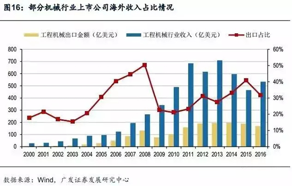 当前机械设备已经成为我国主要的出口贸易产品之一,中国高端制造出口已成趋势。特别是行业中的龙头企业,具备了技术、资金沉淀,在过去几年大多不断完善“一带一路”沿线国家的业务布局,海外市场有效开拓,海外收入占比不断提